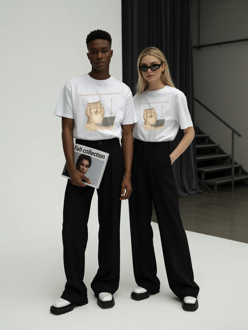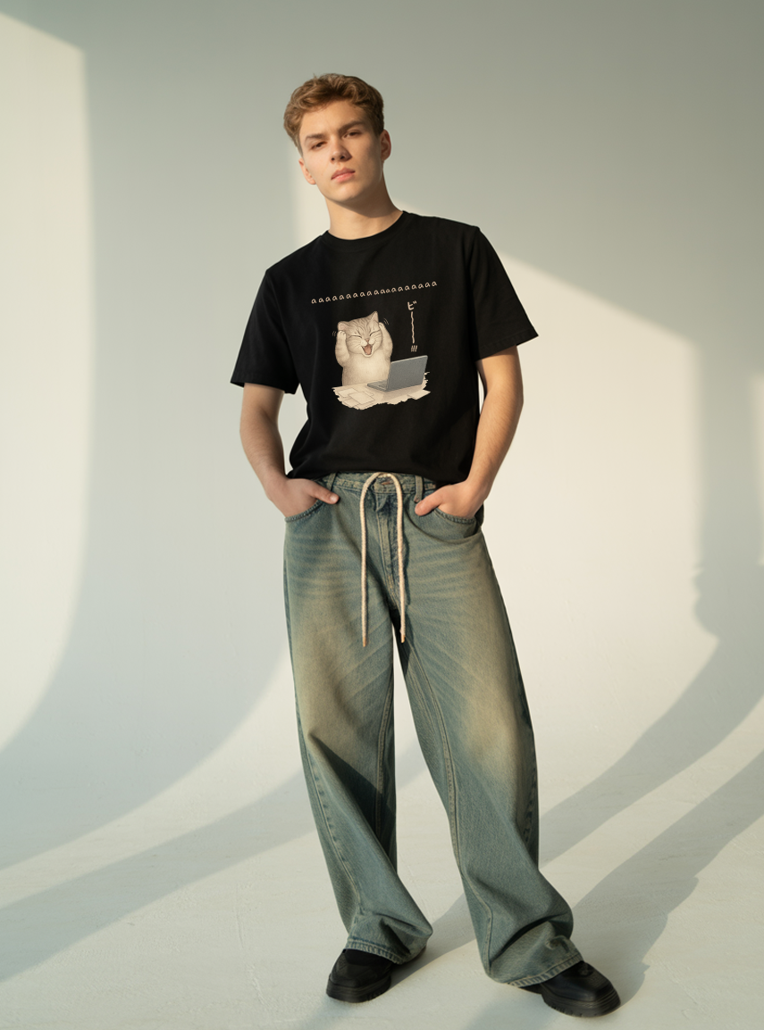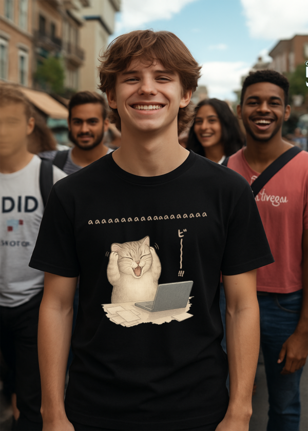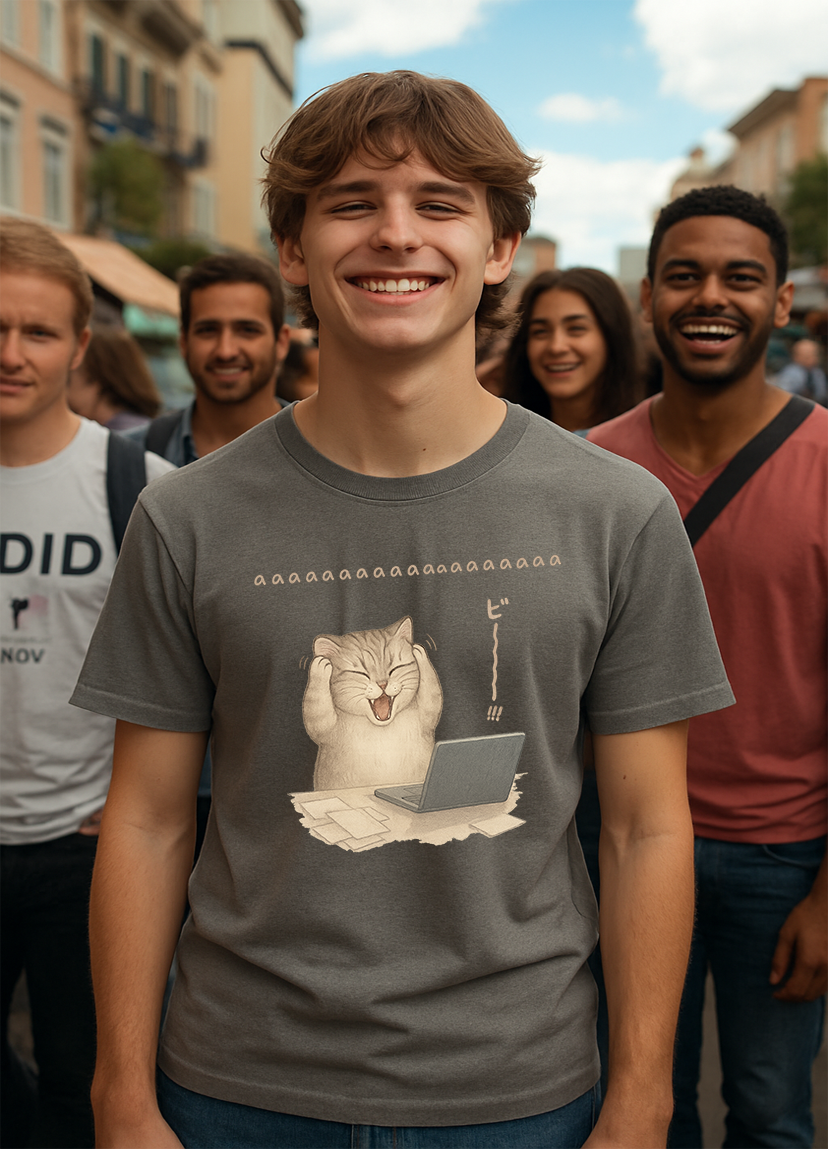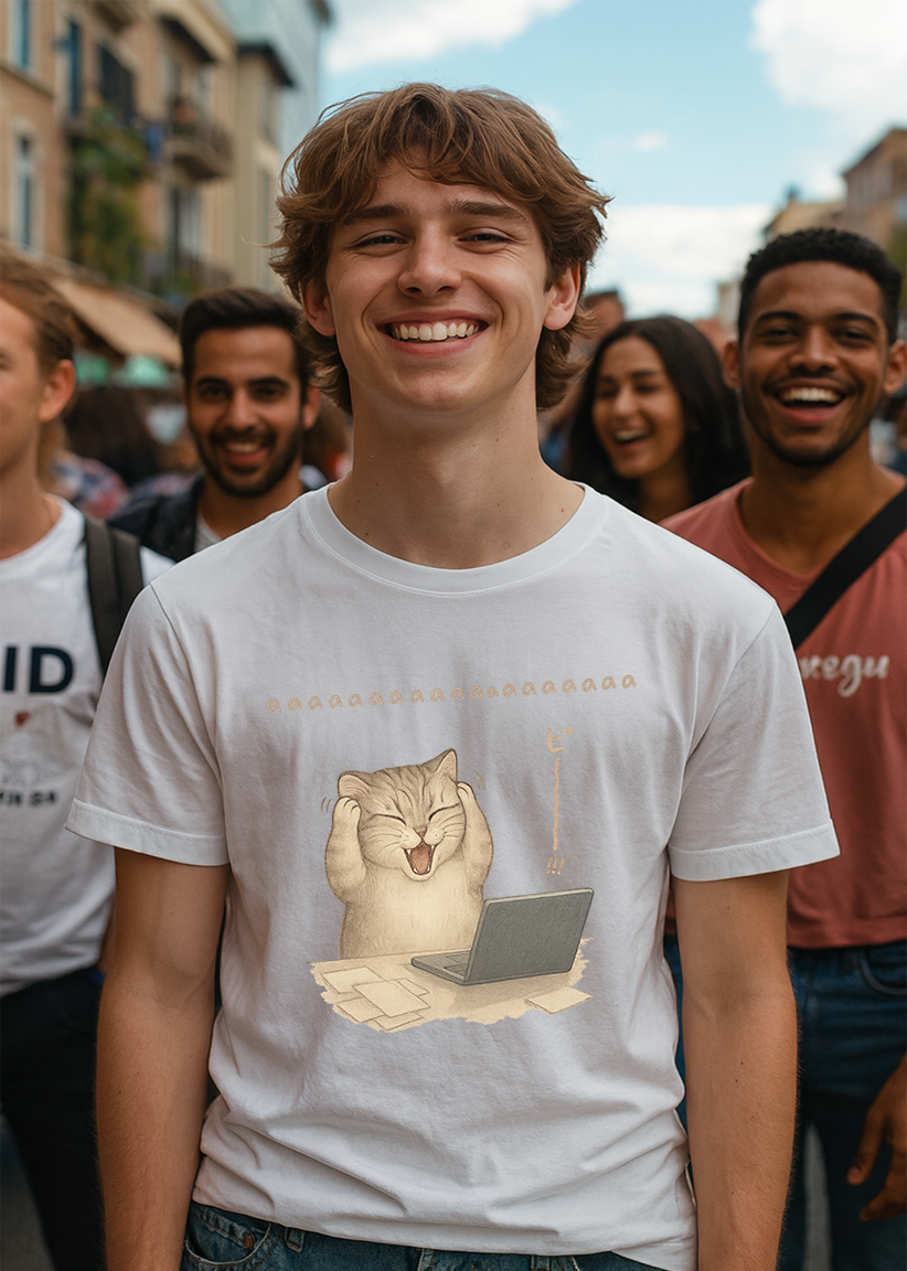 Funny Stress Cat T-Shirt – Cute Screaming Cat Meme Tee LL6